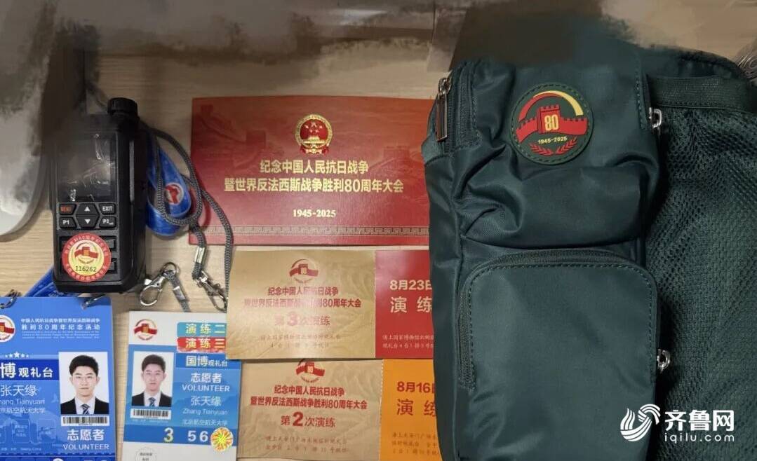 齐鲁网·闪电新闻9月4日讯 9月3日上午,纪念中国人民抗日战争暨世界反法西斯战争胜利80周年大会在北京天安门广场隆重举行。大会期间,共有4265名青年志愿者分布在117个服务保障岗位上,承担着路线引导、现场服务、观众互动、应急处置等任务。来自山东泰安的24岁青年张天缘,便是其中的一员。