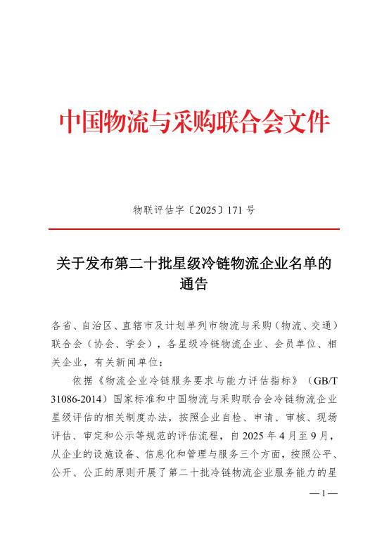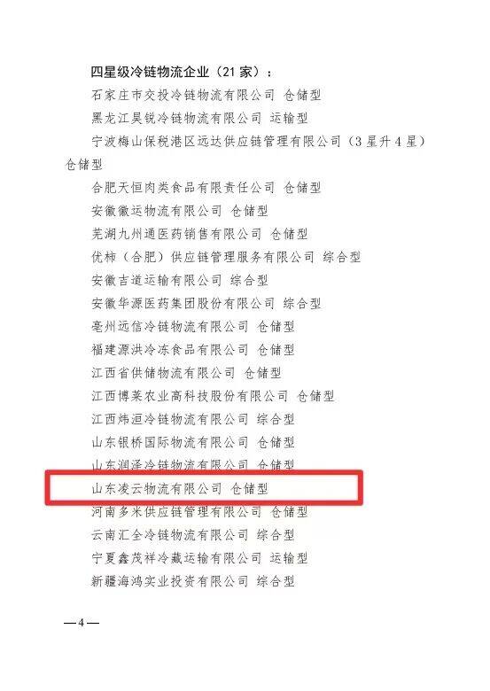 齐鲁网·闪电新闻9月26日讯 近日,中国物流与采购联合会正式发布全国第二十批星级冷链物流企业名单,泰安市宁阳县山东凌云物流有限公司成功上榜,成为泰安市首家“四星级冷链物流企业”,为“宁阳物流”品牌再添国家级分量!