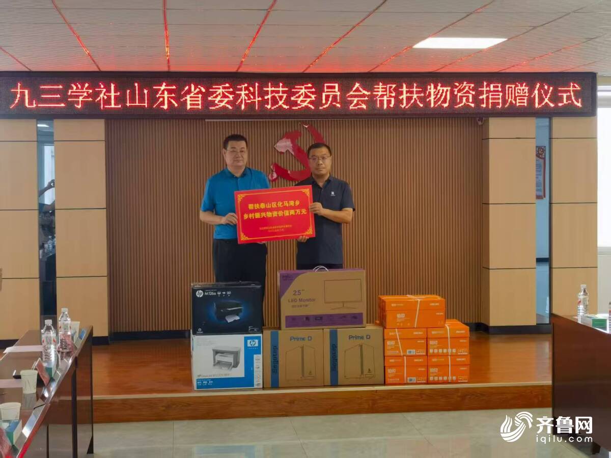 调研结束后,帮扶物资捐赠仪式在化马湾乡党校会议室举行。化马湾乡党委书记丁大伟在致辞中表示,九三学社山东省委科技委员会与驻泰省派工作队心系当地发展,此次“乡村振兴科技行”不仅带来了精准帮扶物资,更在产业科技指导、资源对接等方面提供了有力支持,如同“雪中送炭、精准滴灌”,为全乡乡村振兴注入科技力量。